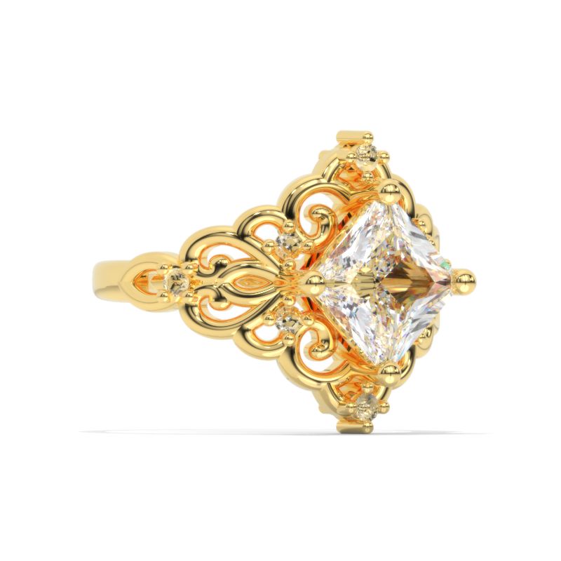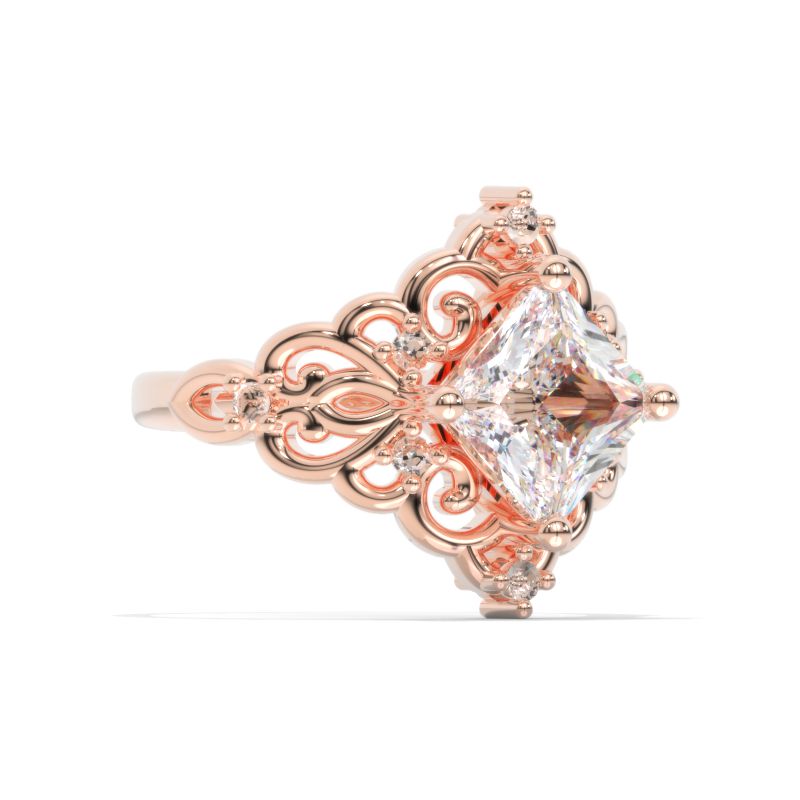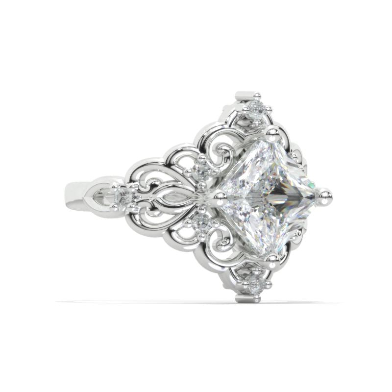 Engagement Ring : Approximately 3+ Carat LAB-Grown Diamond Princess Shape 8x8mm D-Colorless, VVS1-Clarity, VG-Cut, Ex-Polish, VG-Symmetry Center Stone with Colorless 0.2 CTW LAB-Grown Diamond