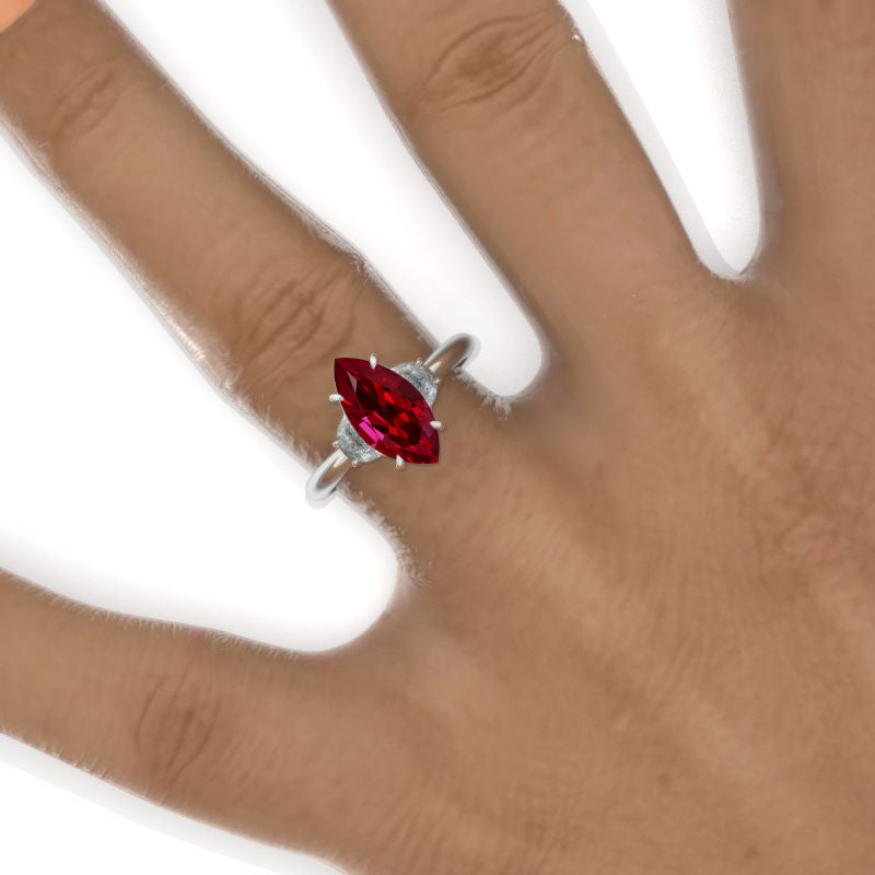 3 Carat Marquise Half-Moon Ruby 14K Gold Engagement Promissory Ring - Giliarto