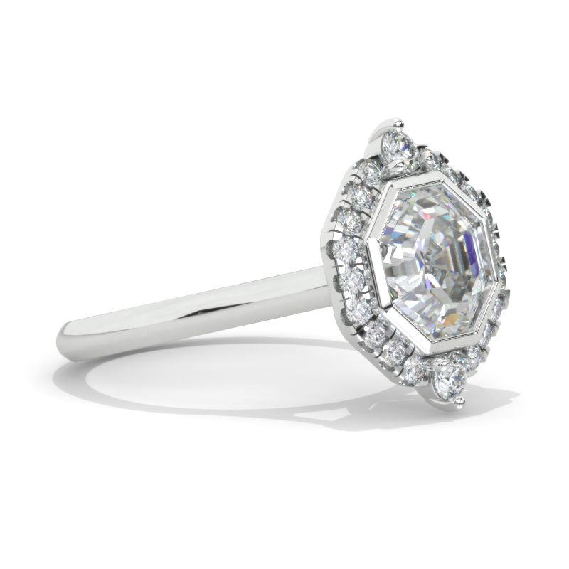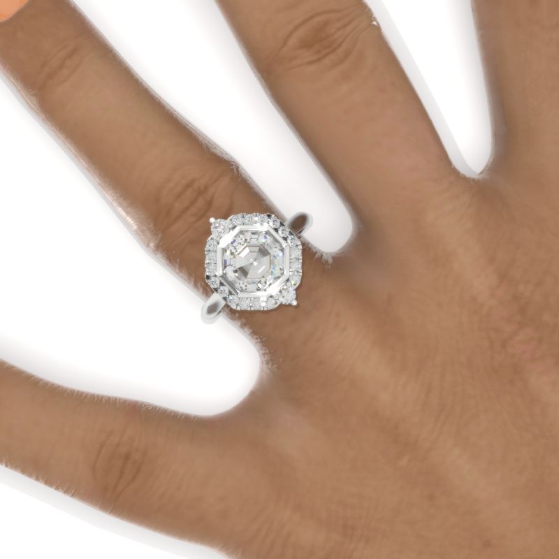3 Carat Octagon Cut LAB-Grown Diamond Halo 14K White Gold Engagement Ring Model 930