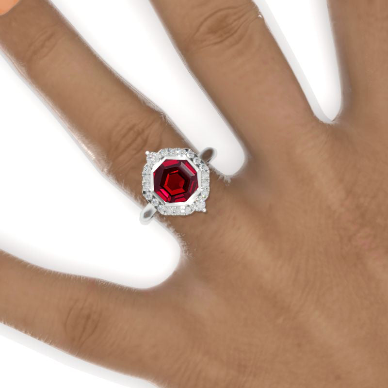 3 Carat Octagon Cut Ruby Halo 14K White Gold Engagement Ring - Giliarto