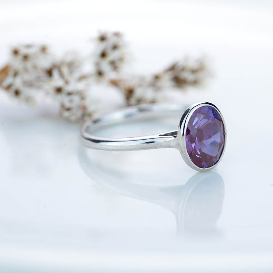 3 Carat Oval Alexandrite Bezel Set Gold Engagement Ring - Giliarto