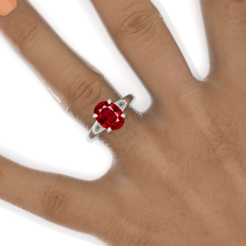 3 Carat Ethically Lab-Grown Ruby AAA+ Grade Oval 10x8mm VG-Cut, Ex-Polish, VG-Symmetry Center Stone.