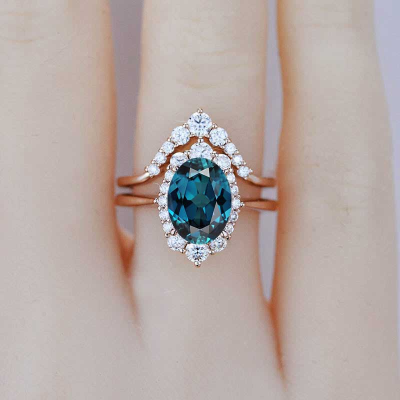 The default design option features 10x8mm Oval Ethically Lab-Grown Cornflower Sapphire Stone, VVS1-Clarity, VG-Cut, Ex-Polish, VG-Symmetry Set with D- Colorless Moissanite Accents Stones in 14K White Gold Engagement Ring.