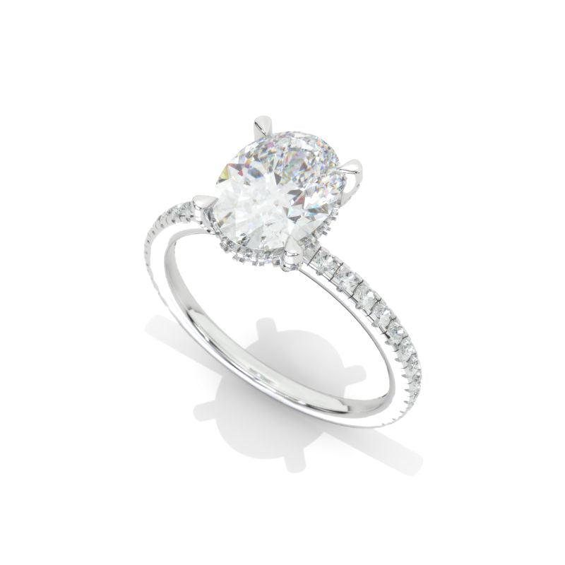 The default design option features Oval Cut 9x7mm LAB-Grown Diamond Center Stone
