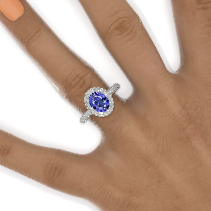 3 Carat Oval Cut Natural Genuine Tanzanite Double Halo White Gold Enga - Giliarto