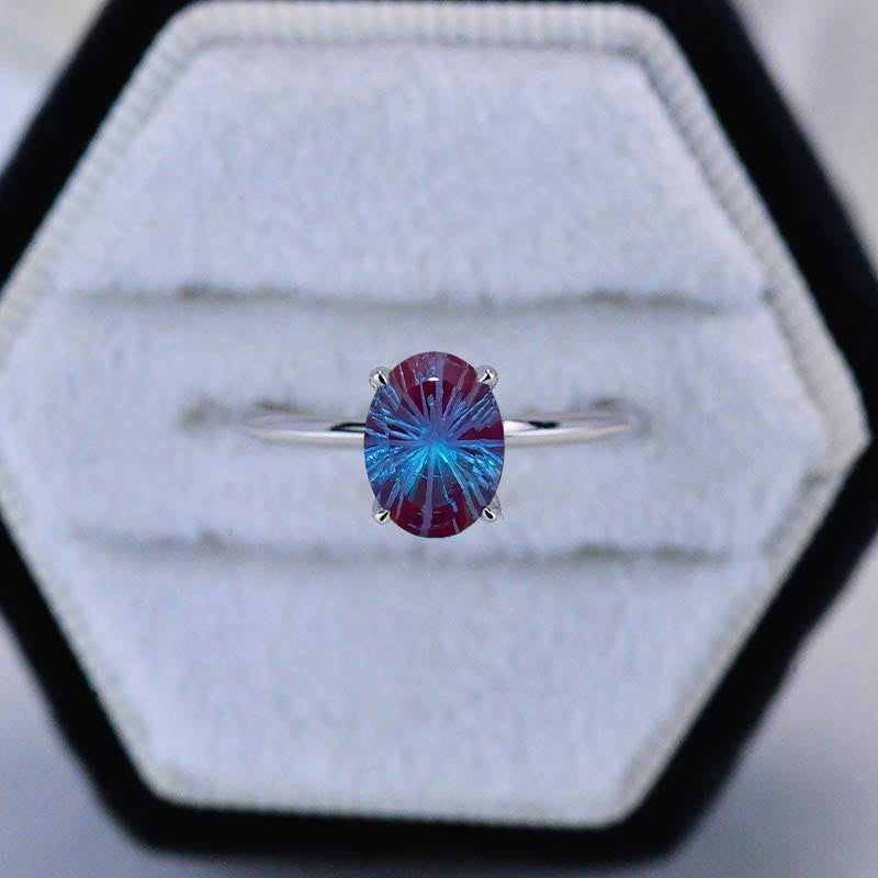 3 Carat Oval Fireworks Cut Alexandrite 14K White Gold Engagement Promissory Ring