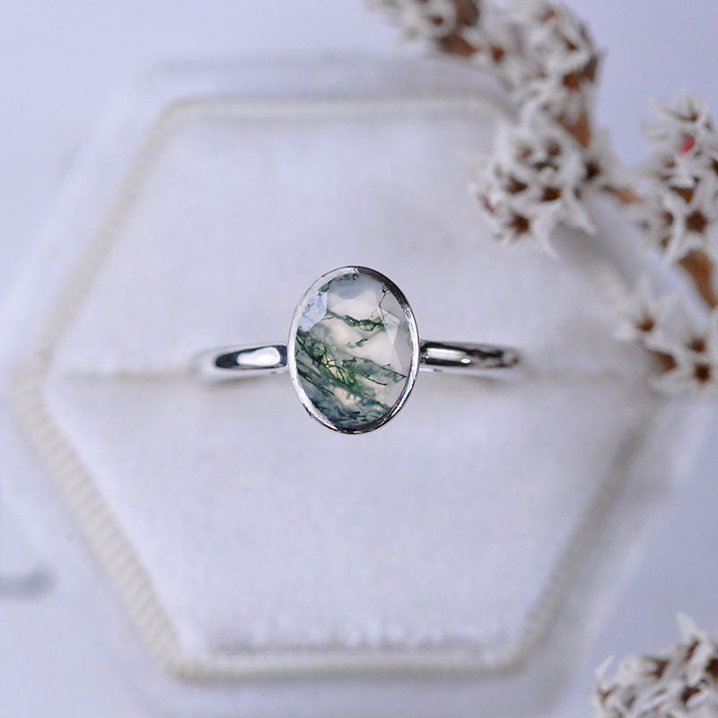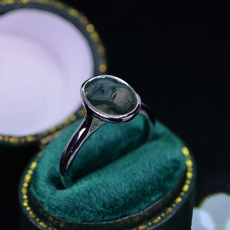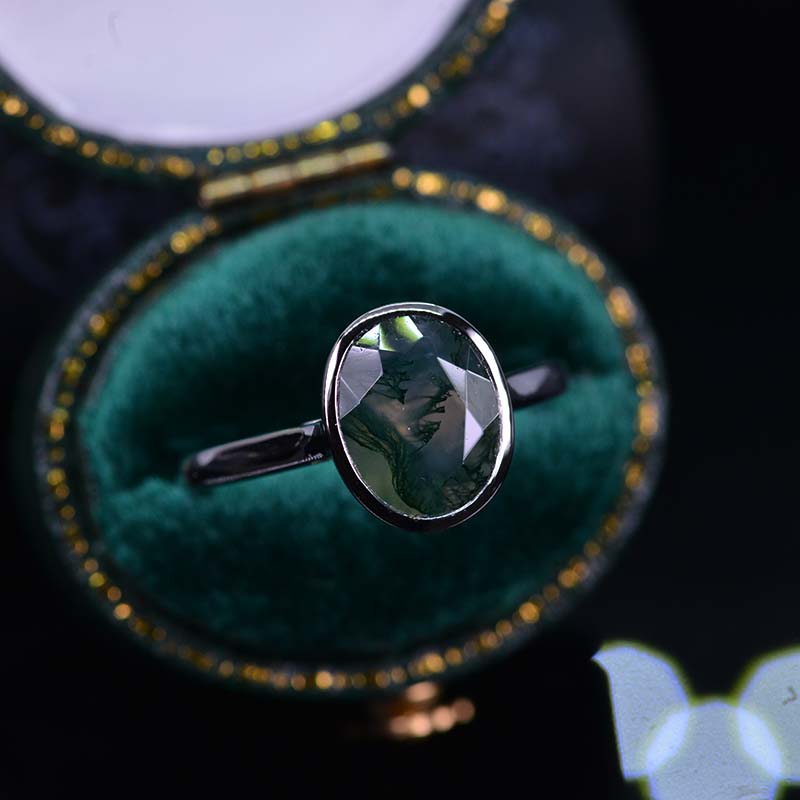 3 Carat Oval Genuine Moss Agate Bezel Set Gold Engagement Ring Model 5 - Giliarto