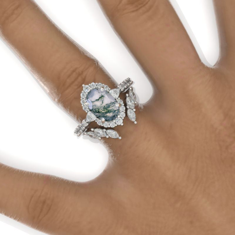 Engagement : 3 Carat Genuine Moss Agate Oval 8x6mm VVS1-Clarity, VG-Cut, Ex-Polish, VG-Symmetry Center Stone with 38 Colorless 0.5 CTW MoissaniteÂ