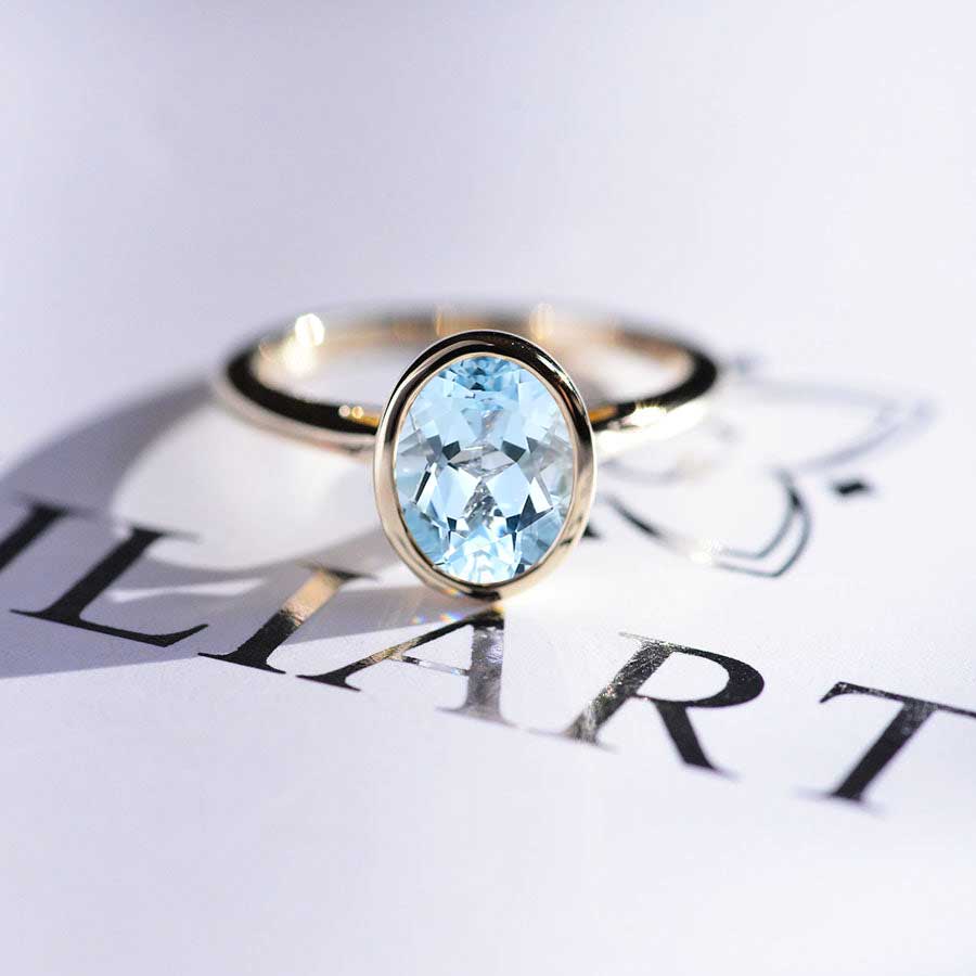 3 Carat Oval Giliarto Genuine Natural Aquamarine Bezel Set Yellow Gold