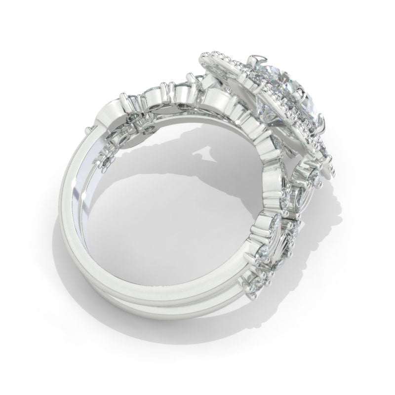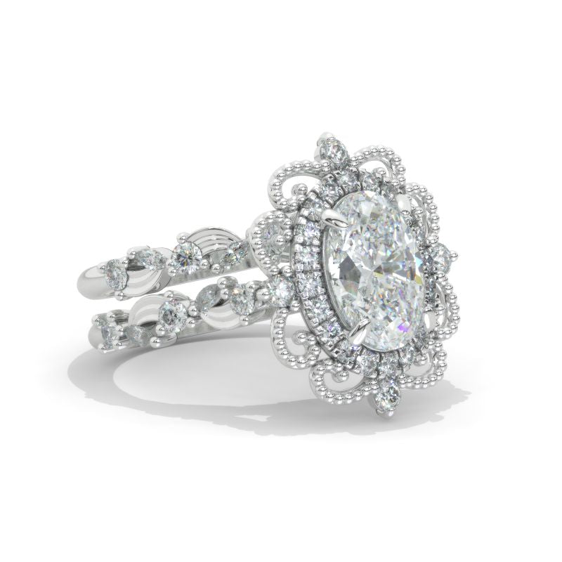 Engagement Ring : LAB-Grown Diamond Round Cut 10x7mm D-Colorless, VVS1-Clarity, VG-Cut, Ex-Polish, VG-Symmetry Center Stone with Colorless Approximately 0.53+ CTW LAB-Grown Diamond