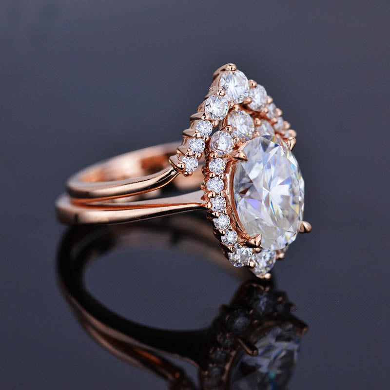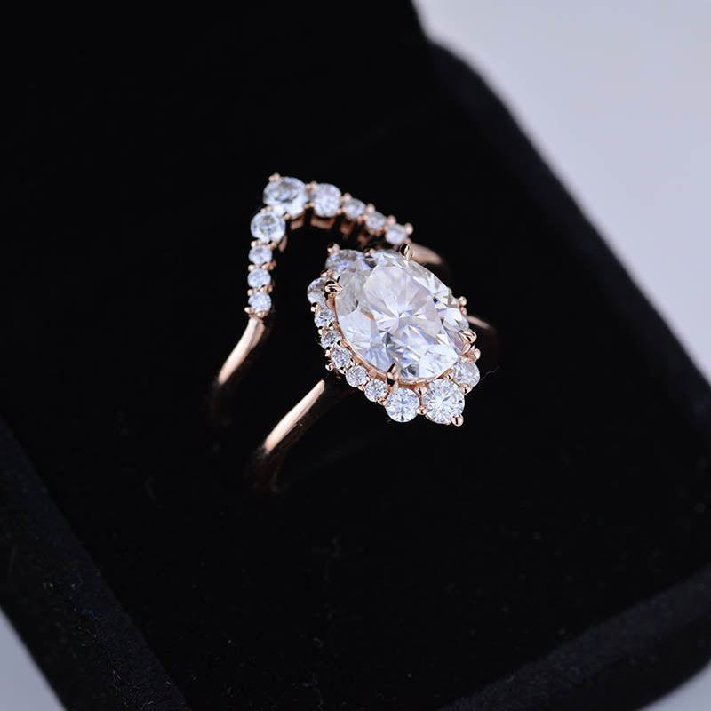 3 Carat Oval Lab Diamond Halo Engagement Ring, Promise Ring For Her, Diamond Wedding Ring, 14K Gold Oval Engagement Ring Set