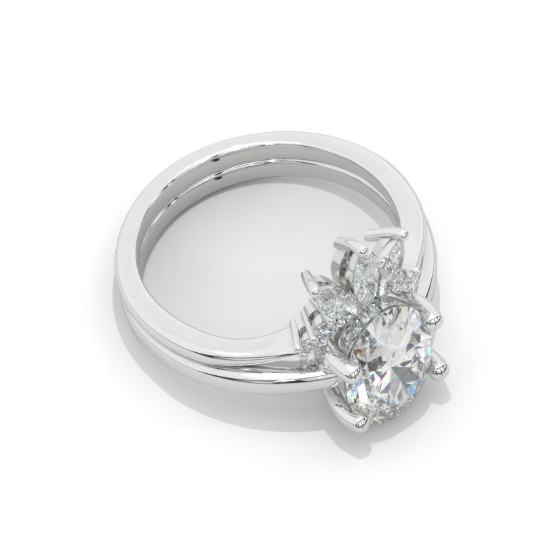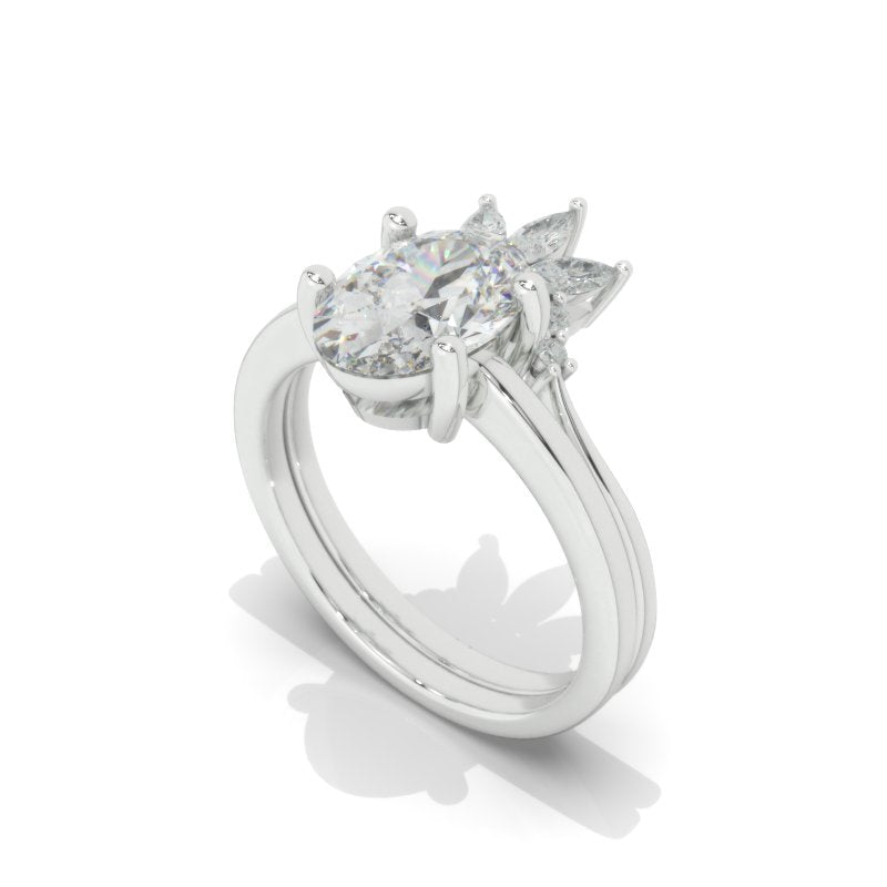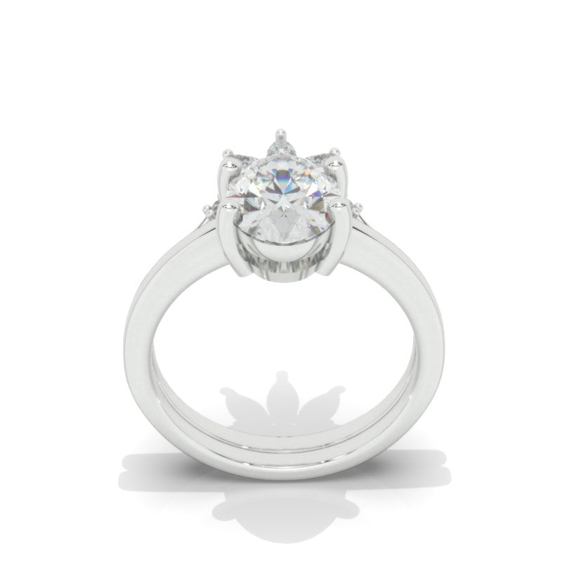 Engagement Approximately 3+ Carat LAB-Grown Diamond Oval 10x8 mm D-Colorless, VVS1-Clarity, VG-Cut, Ex-Polish, VG-Symmetry Center Stone set with D- Colorless LAB-Grown Diamond Accent Stones in 14K White Gold Ring.