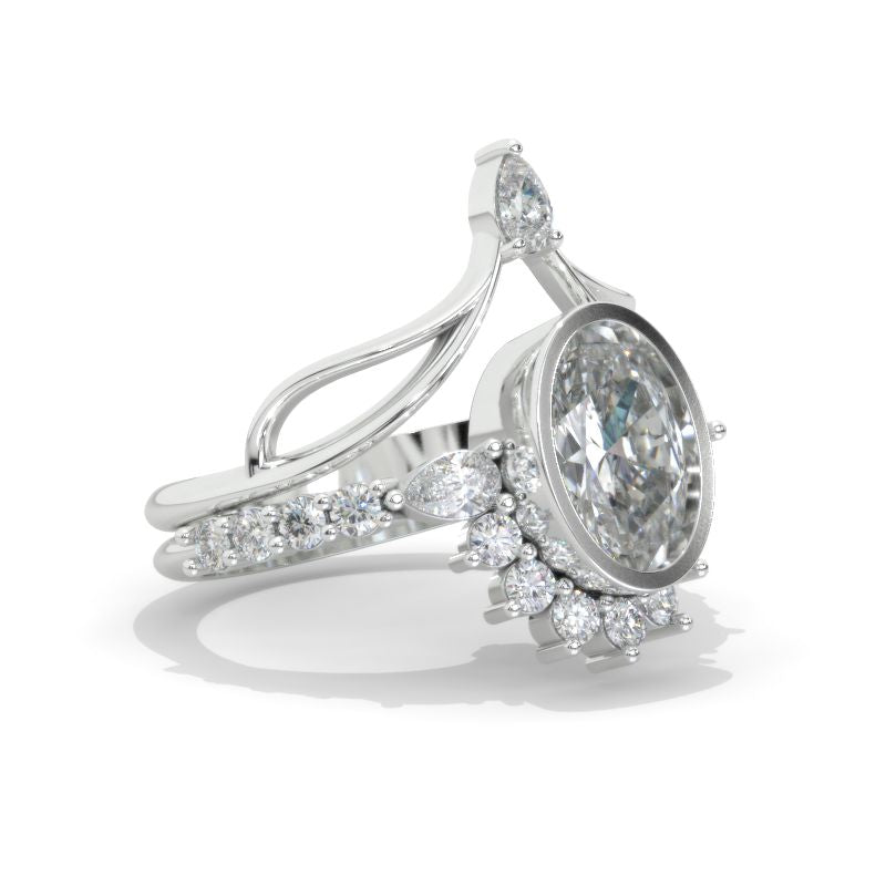Engagement : Approximately 3+ Carat LAB-Grown Diamond Oval 8x6mm D-Colorless, VVS1-Clarity, VG-Cut, Ex-Polish, VG-Symmetry Center Stone with 38 Colorless 0.5 CTW LAB-Grown Diamond