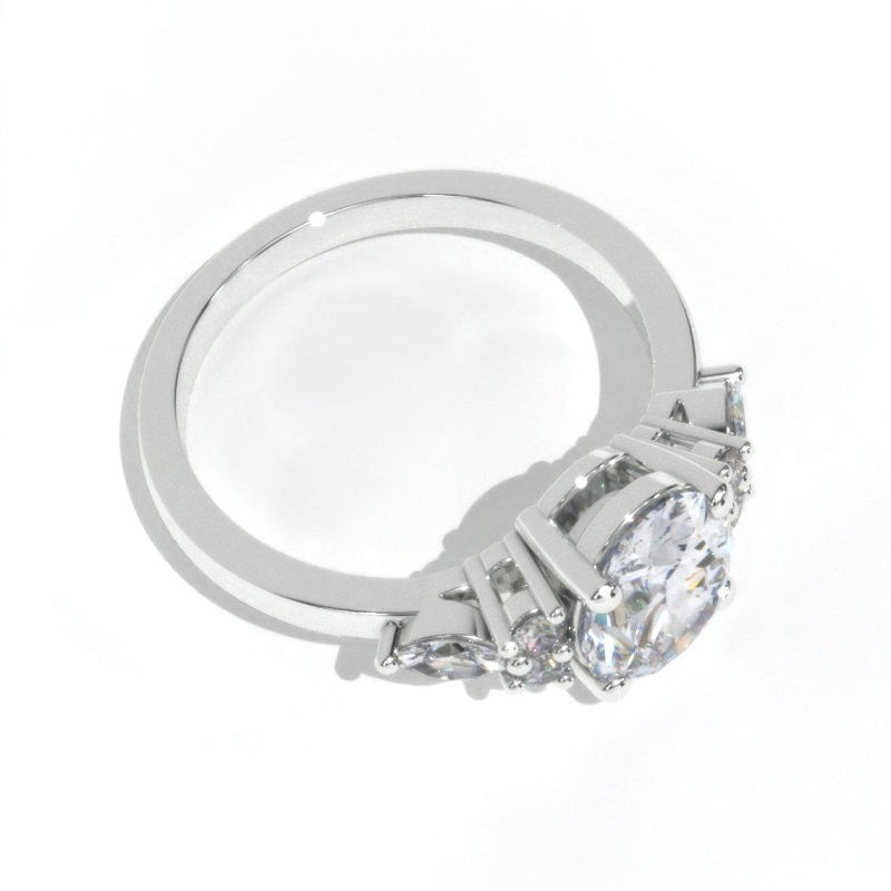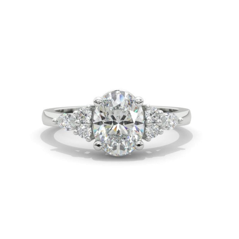 The default design option features Approximately 3+ Carat - 9x7mm OvalĀ LAB-Grown DiamondĀ Center StoneĀ D-ColorlessĀ VVS1-Clarity, VG-Cut, Ex-Polish, VG-Symmetry set with D- Colorless LAB-Grown DiamondĀ Accent StonesĀ