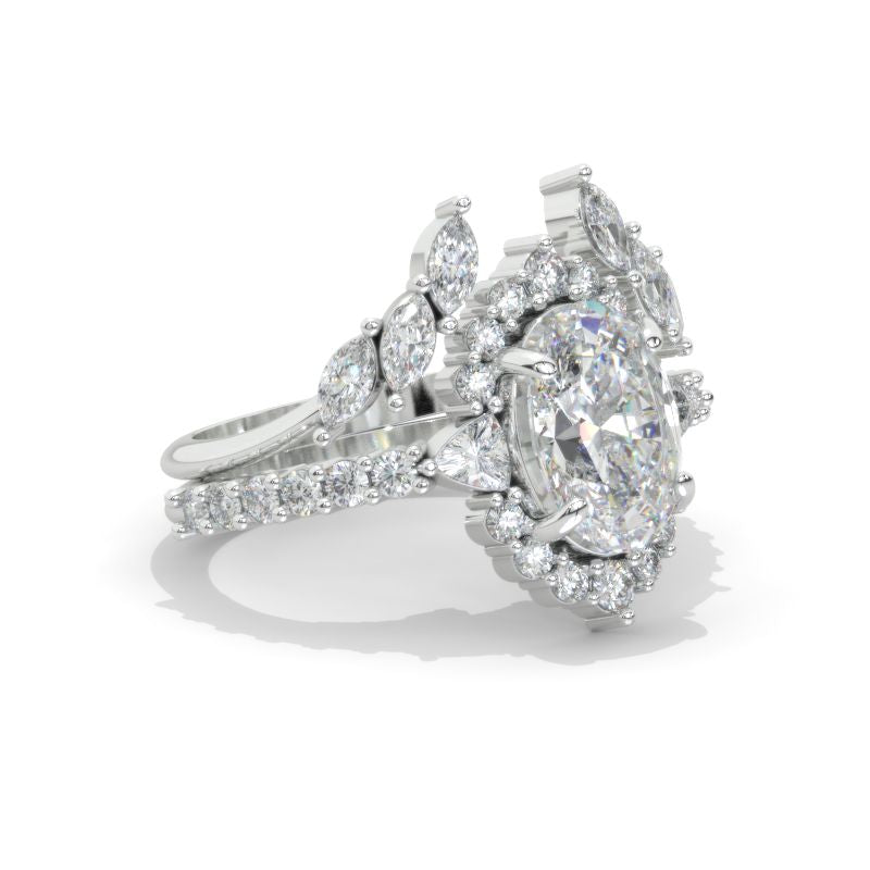 3 Carat Oval LAB-Grown Diamond Halo Engagement Ring Eternity Ring Set Model 980