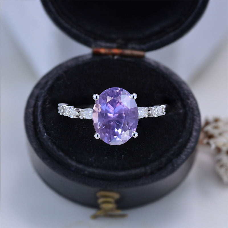 3 Carat Oval Lavender Purple Sapphire White Gold Engagement Ring - Giliarto