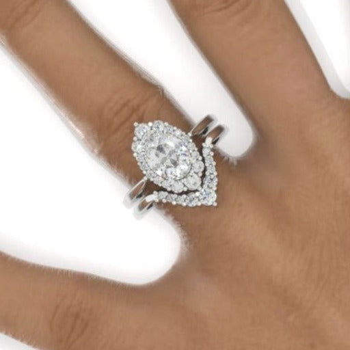3 Carat Oval Moissanite Halo Engagement Ring, Promise Ring For Her, Moissanite Wedding Ring, 14K Gold Oval Moissanite Engagement Ring Set