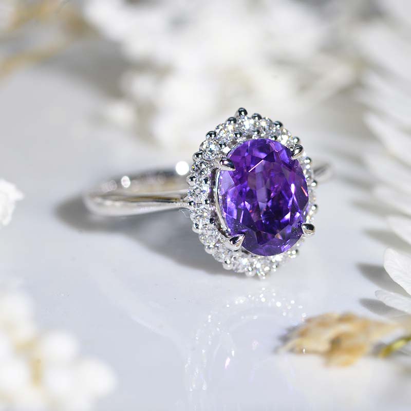 3 Carat Oval Natural Amethyst Halo Engagement Ring - Giliarto