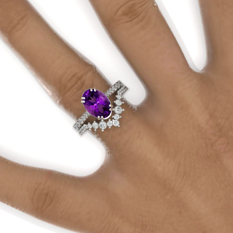 3 Carat Oval Natural Amethyst Set Engagement Ring Eternity Ring Set - Giliarto