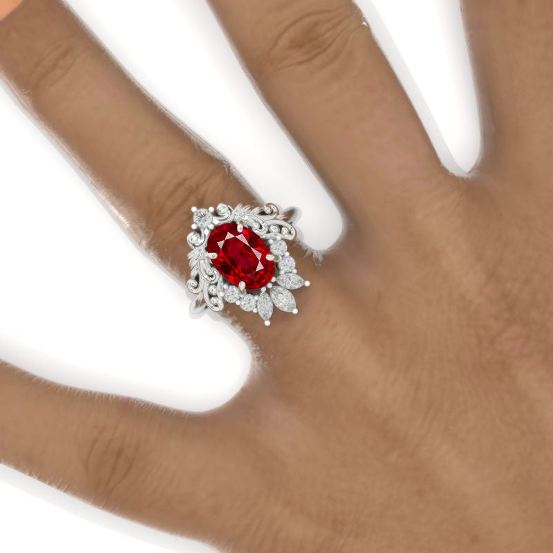 3 Carat Oval Ruby Halo Ornamental Engagement Ring