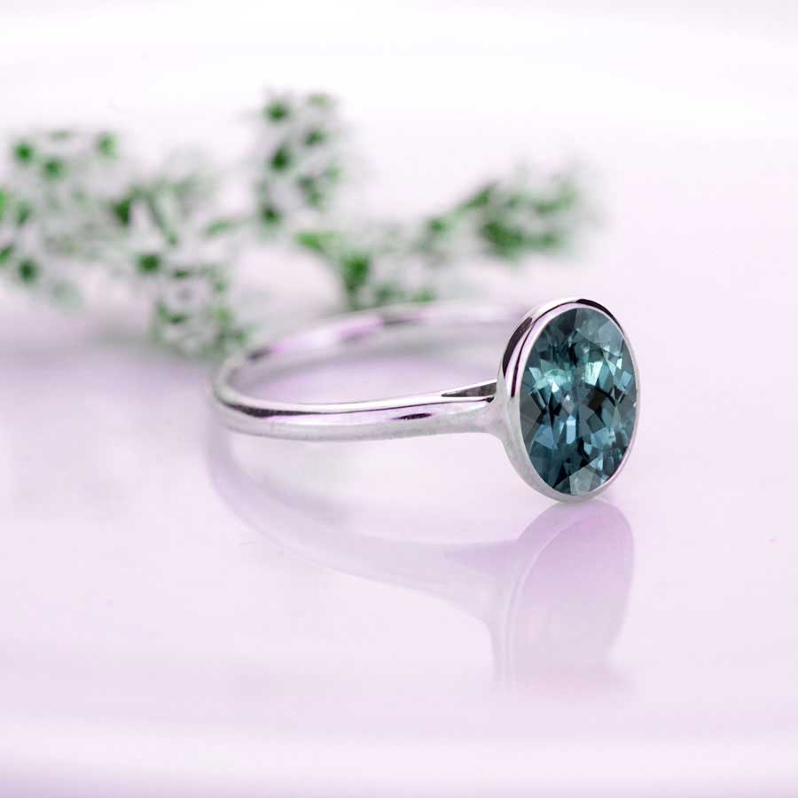 3 Carat Oval Teal Sapphire Bezel Set Engagement Ring