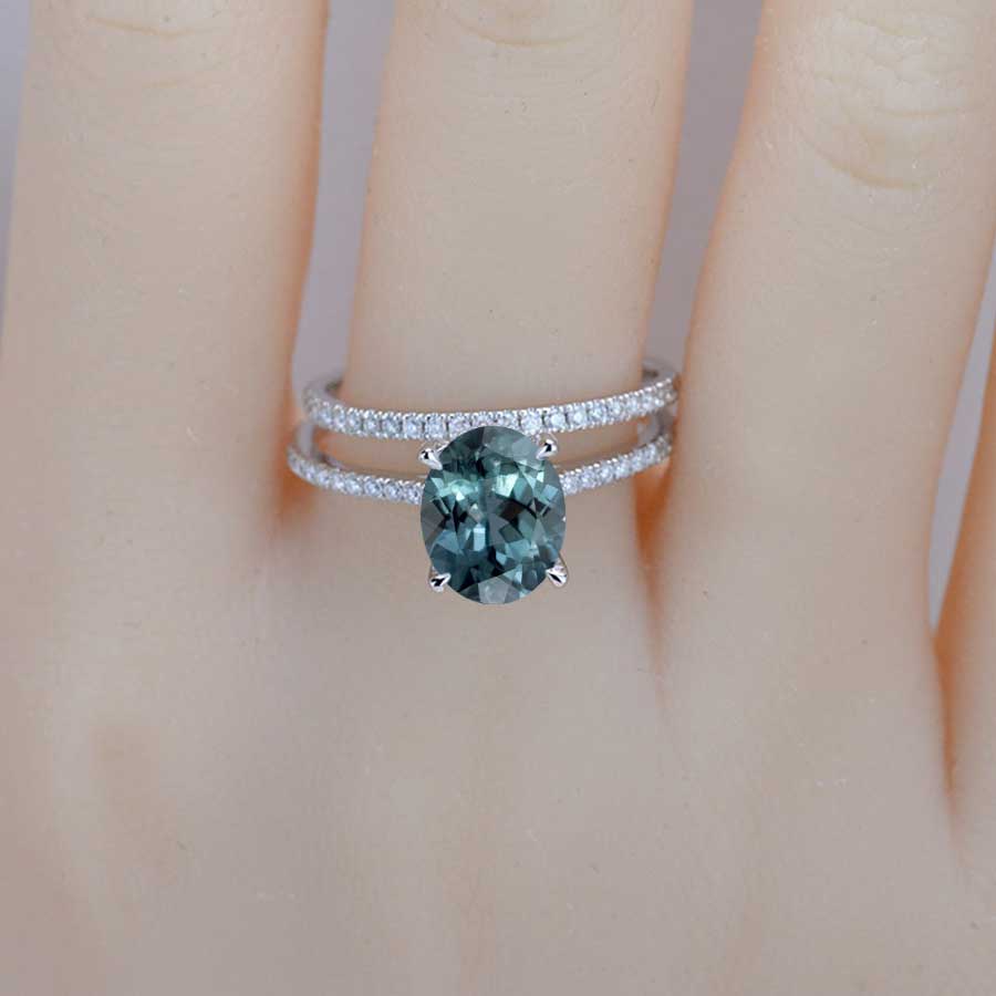 3 Carat Oval Teal Sapphire Hidden Halo Engagement Ring Set - Giliarto