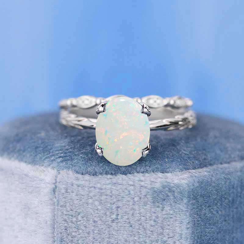 3 Carat Oval White Opal Engagement Eternity Gold Rings Set