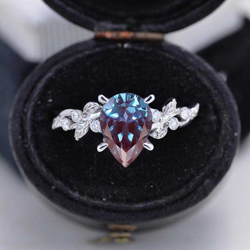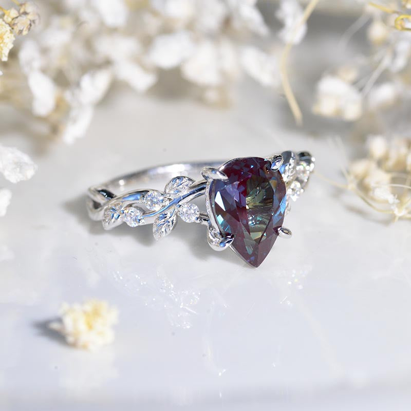 3 Carat Pear Cut Alexandrite Floral Gold Engagement Ring - Giliarto