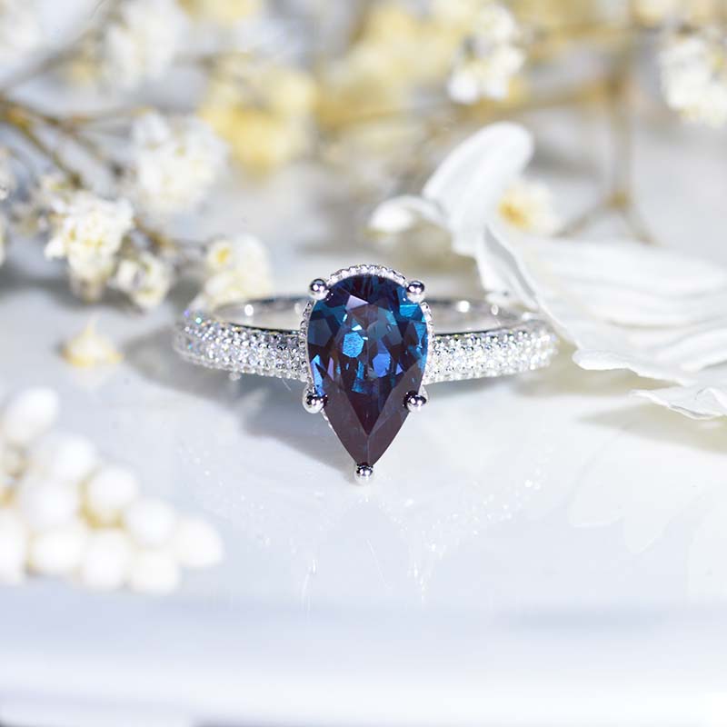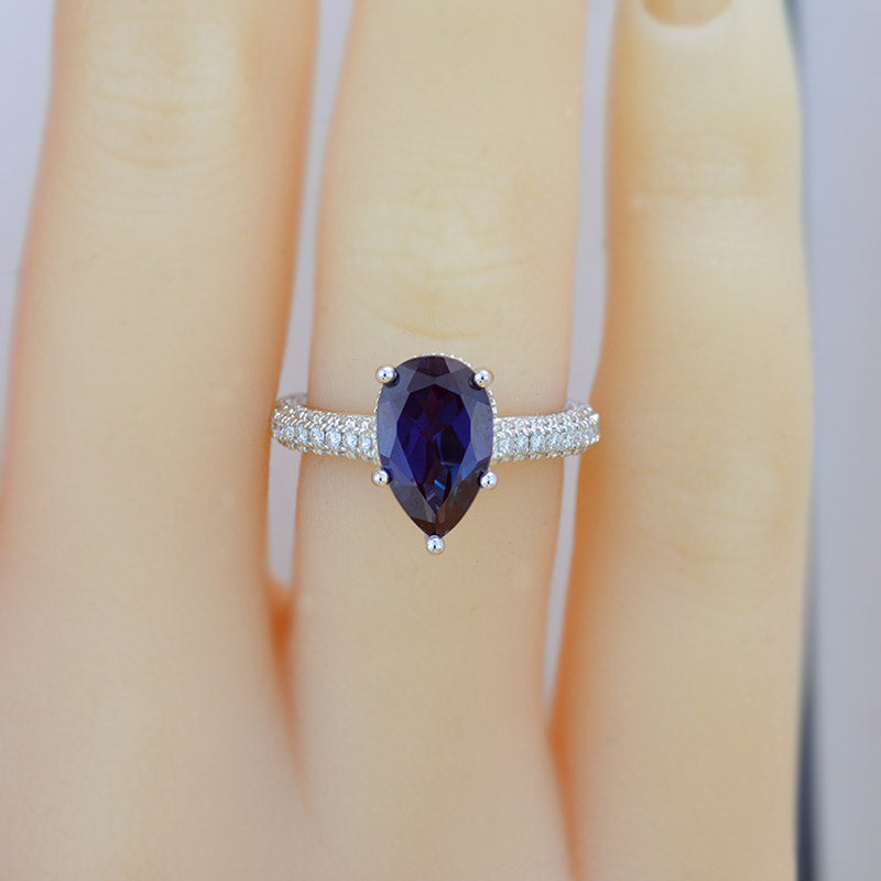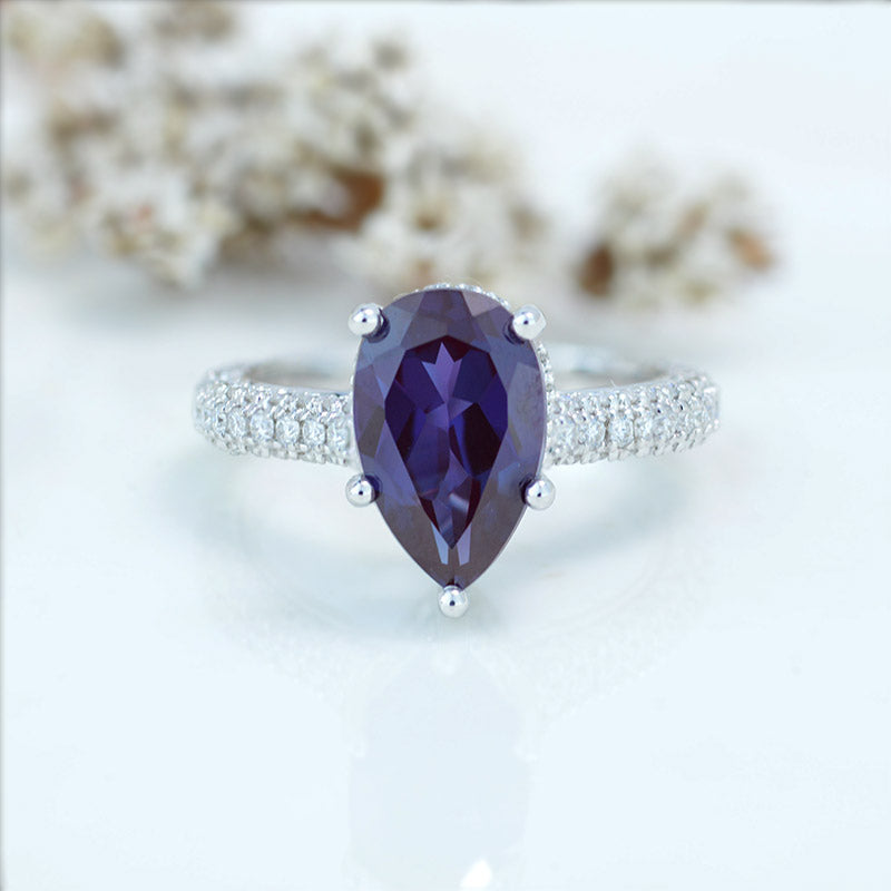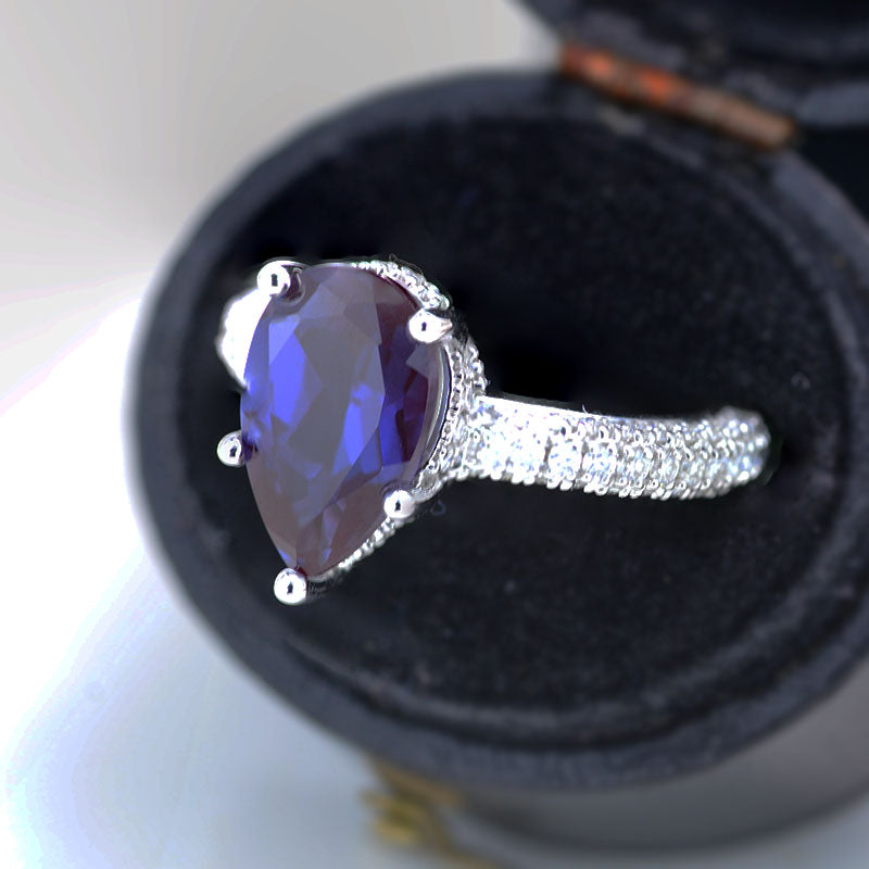 3 Carat Pear Cut Alexandrite Hidden Halo 14K White Gold Engagement Rin - Giliarto