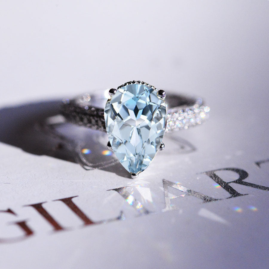 3 Carat Pear Cut Aquamarine Hidden Halo Gold Engagement Ring - Giliarto