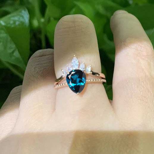 Pear Cut Ethically Lab-Grown Cornflower Sapphire Ring- Two Ring Set.