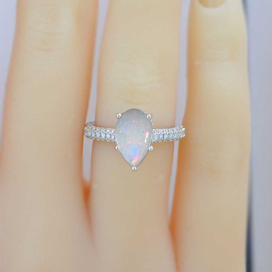 3 Carat Pear Cut Genuine White Opal Hidden Halo Gold Engagement Ring - Giliarto
