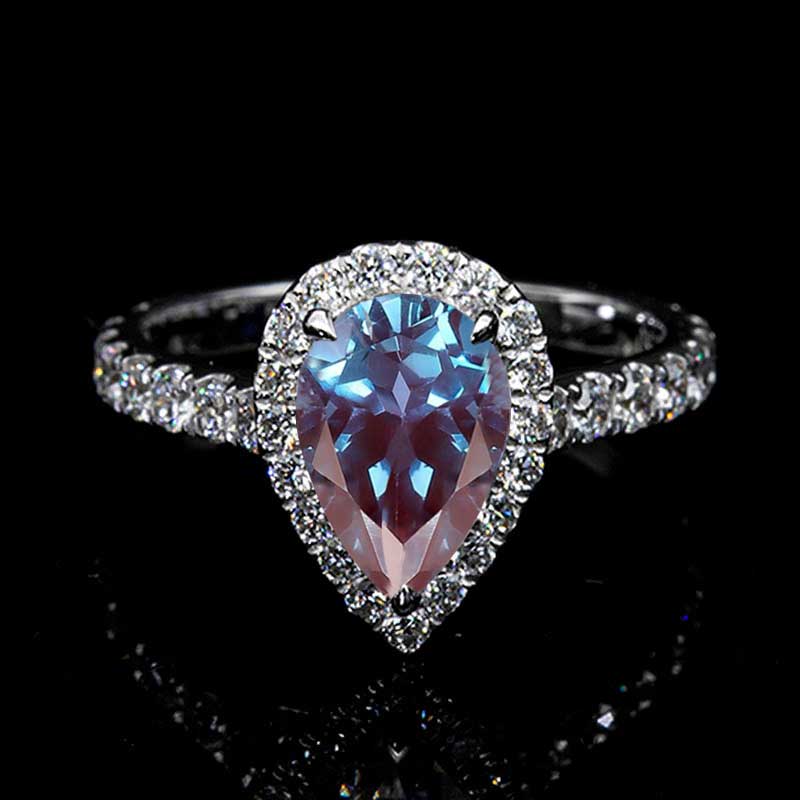 3 Carat Pear Cut Halo Alexandrite White Gold Engagement Ring