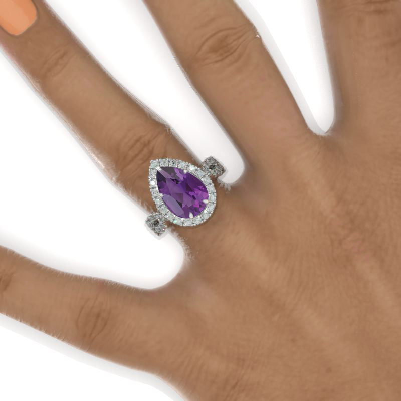 3 Carat Pear Cut Natural Amethyst Hidden Halo Engagement Twisted Shank - Giliarto