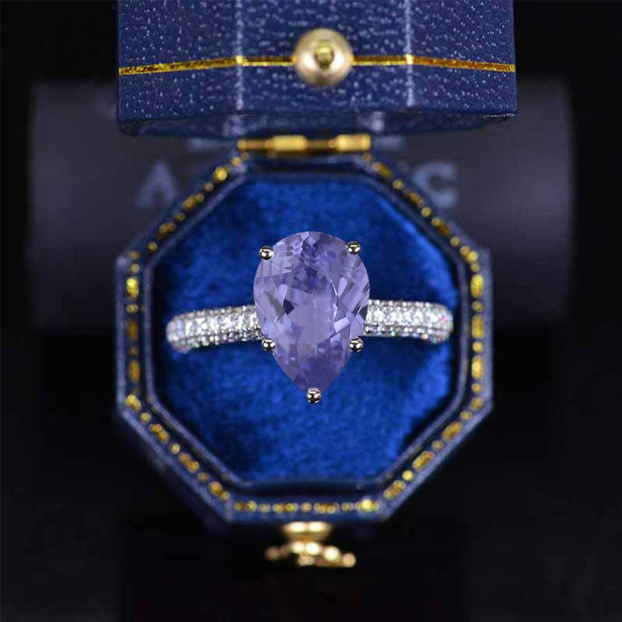 3 Carat Pear Cut Purple Sapphire Hidden Halo Gold Engagement Ring