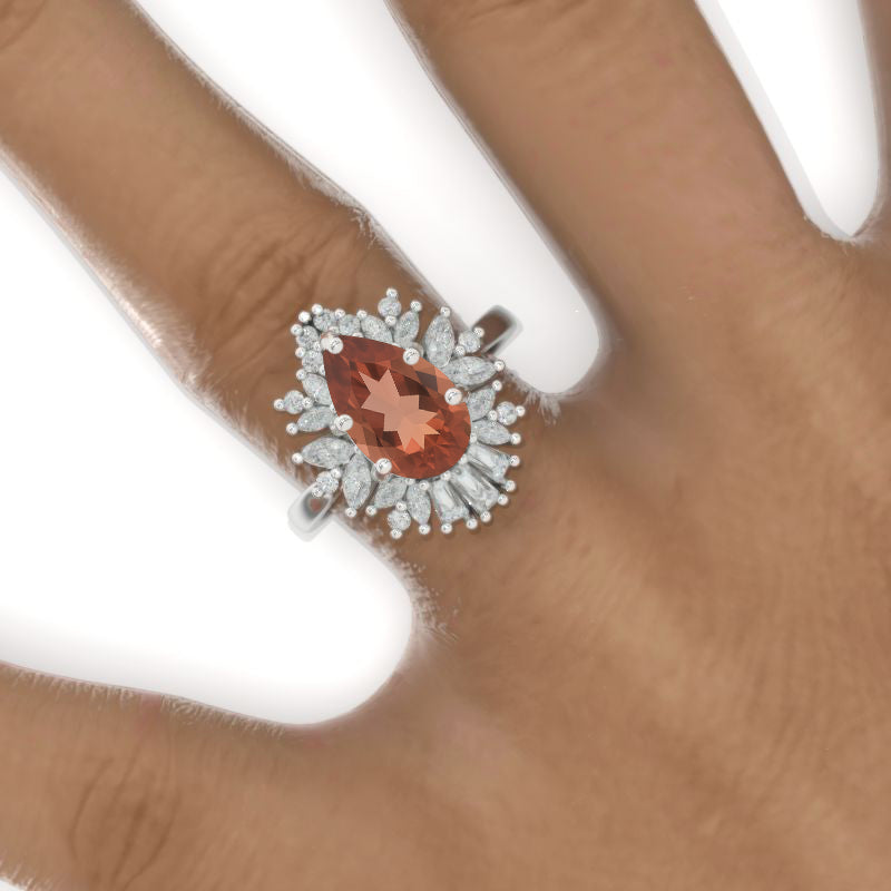 The default design option features 3 Carat 11x7mm Pear Center Ethically Lab-Grown Zultanite Grade AAA+ Center Stone VG-Cut, Ex-Polish, VG-Symmetry set with Moissanite Accent Stones D-Colorless, VVS1-Clarity,