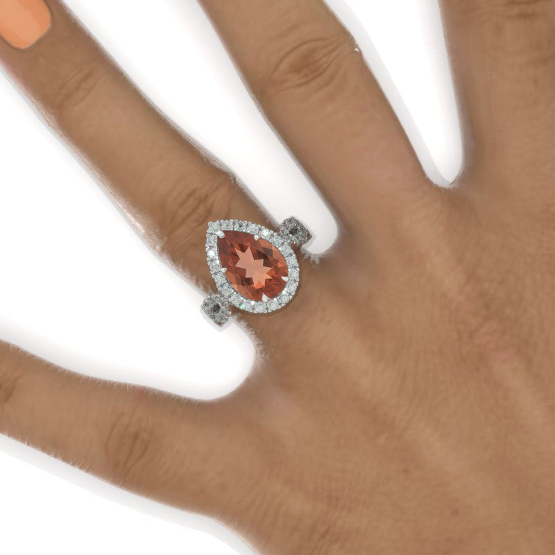 The default design option features approximately 3 Carat Ethically Lab-Grown Zultanite Grade AAA+ Pear 12x8mm,VG-Cut,Ex-Polish, VG-Symmetry Center Stone