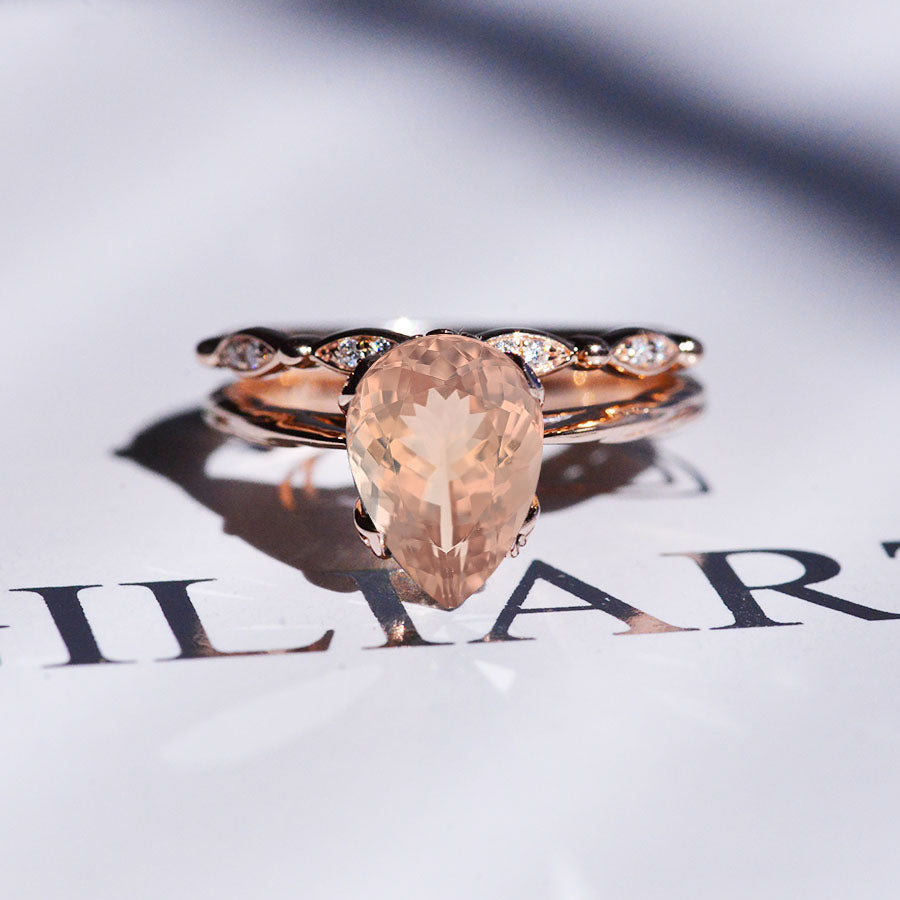 3 Carat Pear Genuine Peach Morganite Engagement Eternity Rose Gold Rin - Giliarto