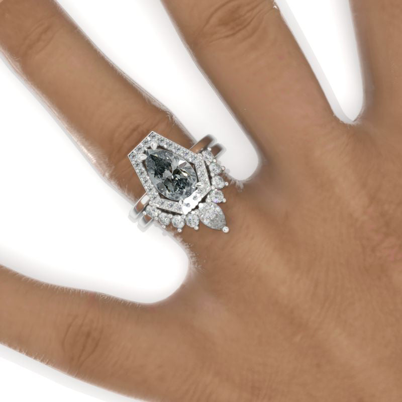 Engagement Ring : 3 Carat Giliarto Gray Moissanite Pear 11x7mm Gray-Color, VVS1-Clarity, VG-Cut, Ex-Polish, VG-Symmetry Center Stone with 124 Colorless