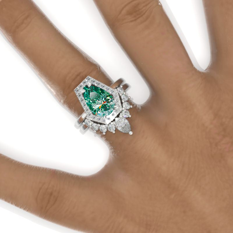 Engagement Ring : 3 Carat Giliarto Green Moissanite Pear 11x7mm Green Color, VVS1-Clarity, VG-Cut, Ex-Polish, VG-Symmetry Center Stone with 124 Colorless