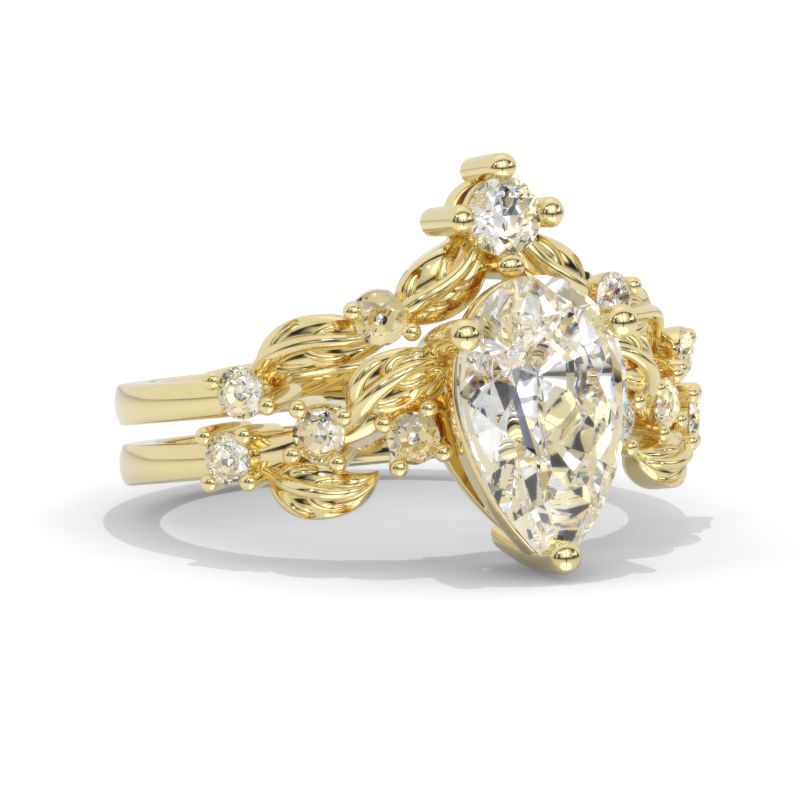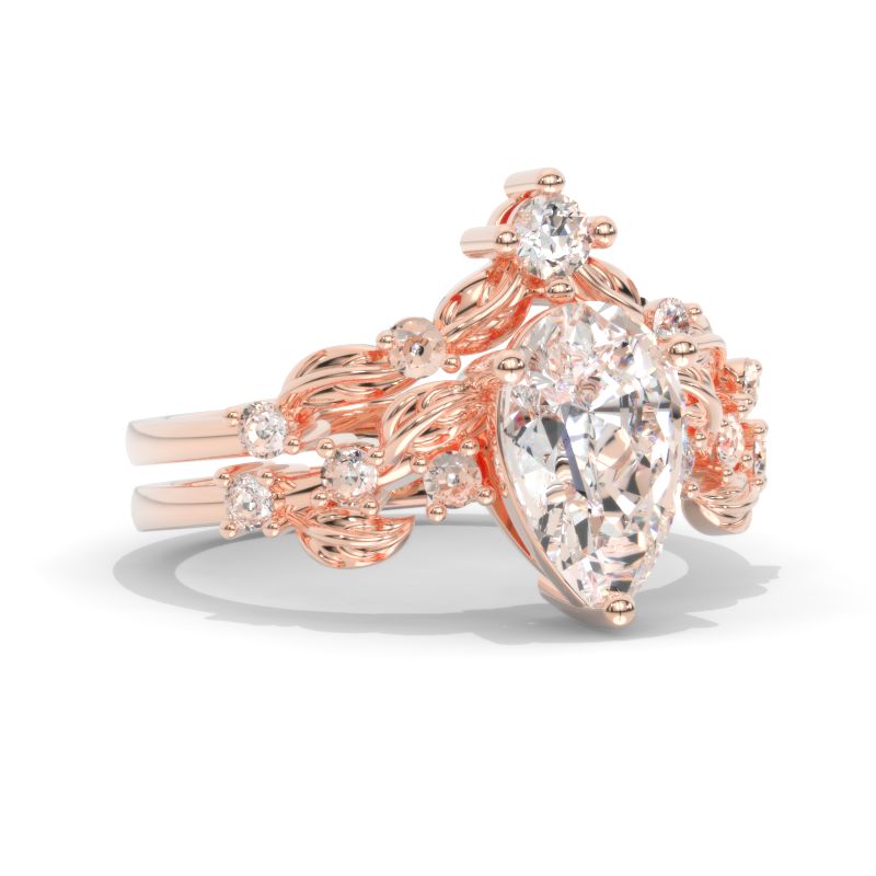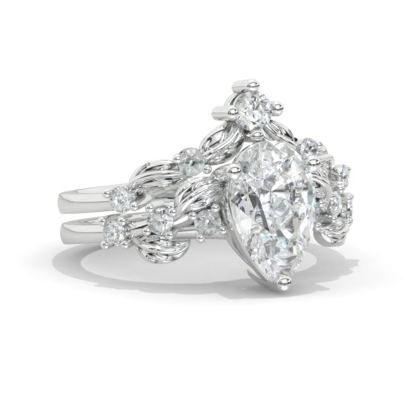 Engagement Ring Approximately 3+ Carat LAB-Grown Diamond Pear Shape 11x7mm D-Colorless, VVS1-Clarity, VG-Cut, Ex-Polish, VG-Symmetry Center Stone with Colorless 0.2 CTW LAB-Grown Diamond