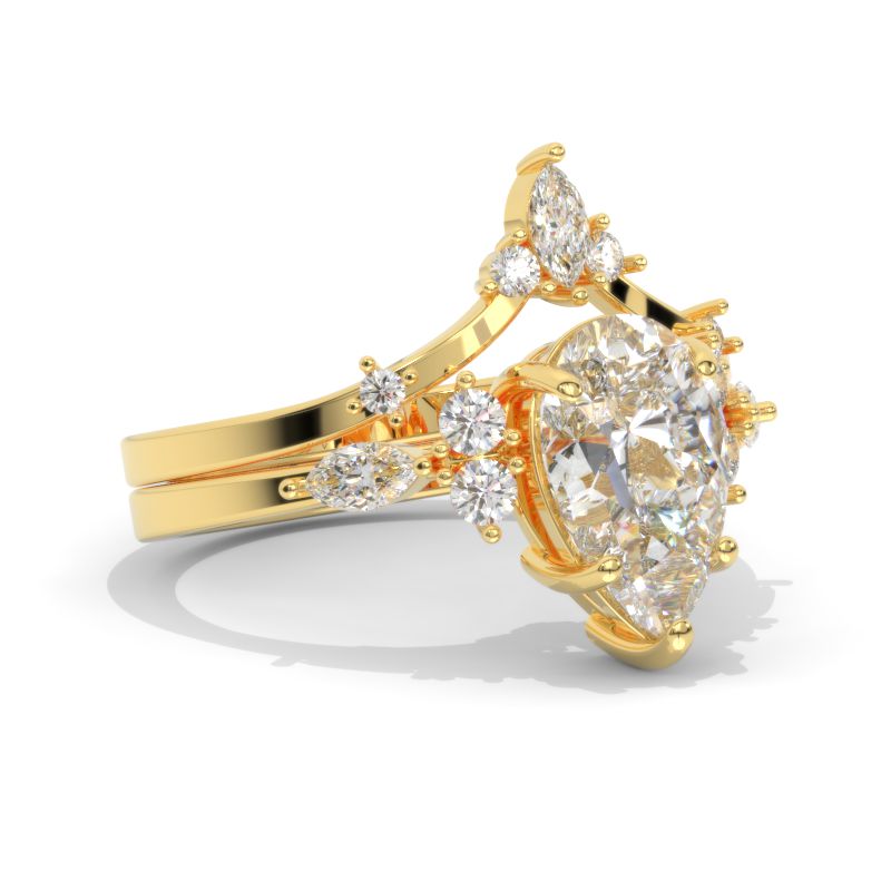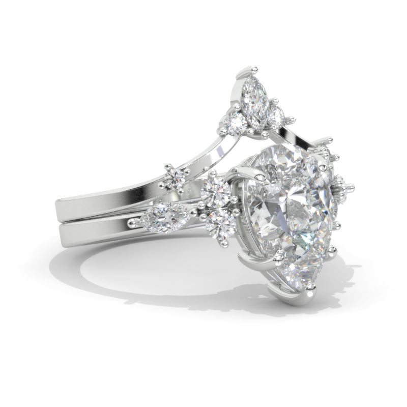 Engagement Ring: Approximately 3+ Carat LAB-Grown Diamond Pear 11x7mm D-Colorless, VVS1-Clarity, VG-Cut, Ex-Polish, VG-Symmetry Center Stone with 124 Colorless