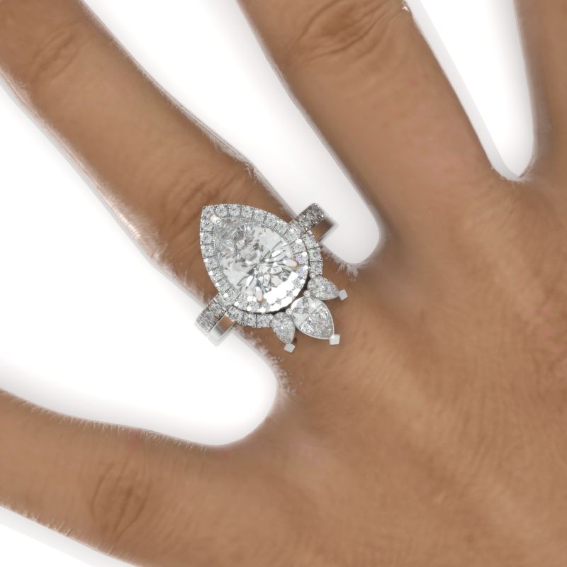 Engagement Ring: Approximately 3+ Carat LAB-Grown Diamond Oval 11x7mm D-Colorless, VVS1-Clarity, VG-Cut, Ex-Polish, VG-Symmetry Center Stone with D-Colorless 0.2 CTW LAB-Grown Diamond VVS1-Clarity Accent Stones 14K White Gold Ring.