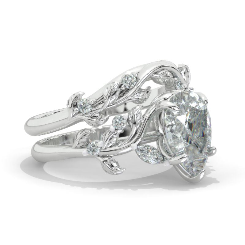 Approximately 3+ Carat LAB-Grown Diamond Oval 11x7mm D-Colorless, VVS1-Clarity, VG-Cut, Ex-Polish, VG-Symmetry Center Stone with D-Colorless 0.8 CTW LAB-Grown Diamond VVS1-Clarity Accent Stones 14K White Gold Ring Set.