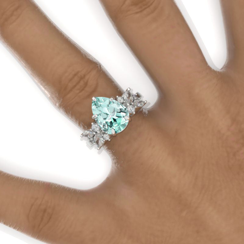 3 Carat Pear Mint Sapphire Cluster 14K White Gold Engagement Eternity Ring