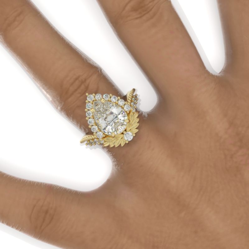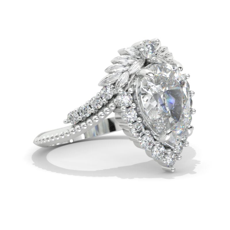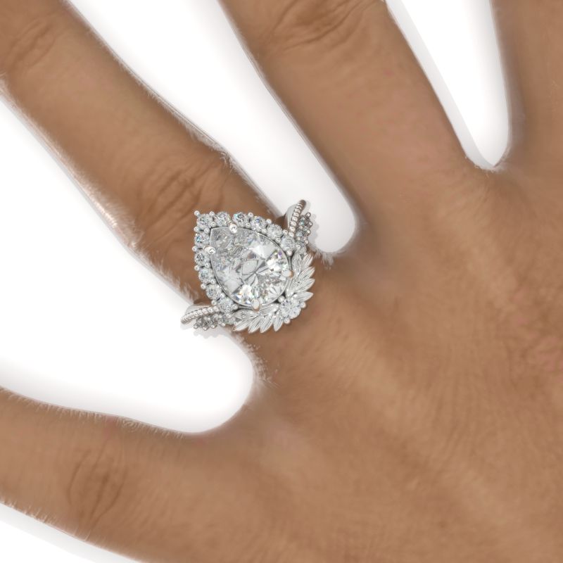 3 Carat Pear Moissanite Halo Floral Engagement Ring 14K White Gold Ring