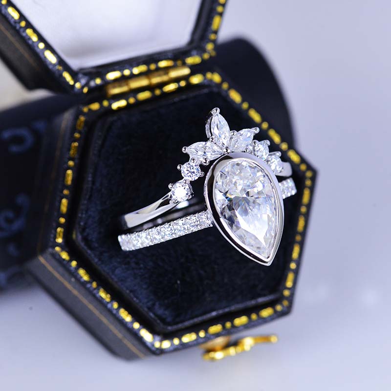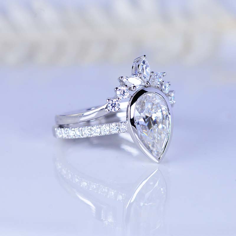 Engagement Ring : 3 Carat Giliarto Moissanite Pear 11x7mm D-Colorless, VVS1-Clarity, VG-Cut, Ex-Polish, VG-Symmetry Center Stone with 124 Colorless