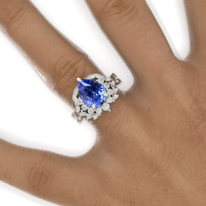 3 Carat Pear Natural Genuine Tanzanite Halo Floral Twig Engagement Rin - Giliarto