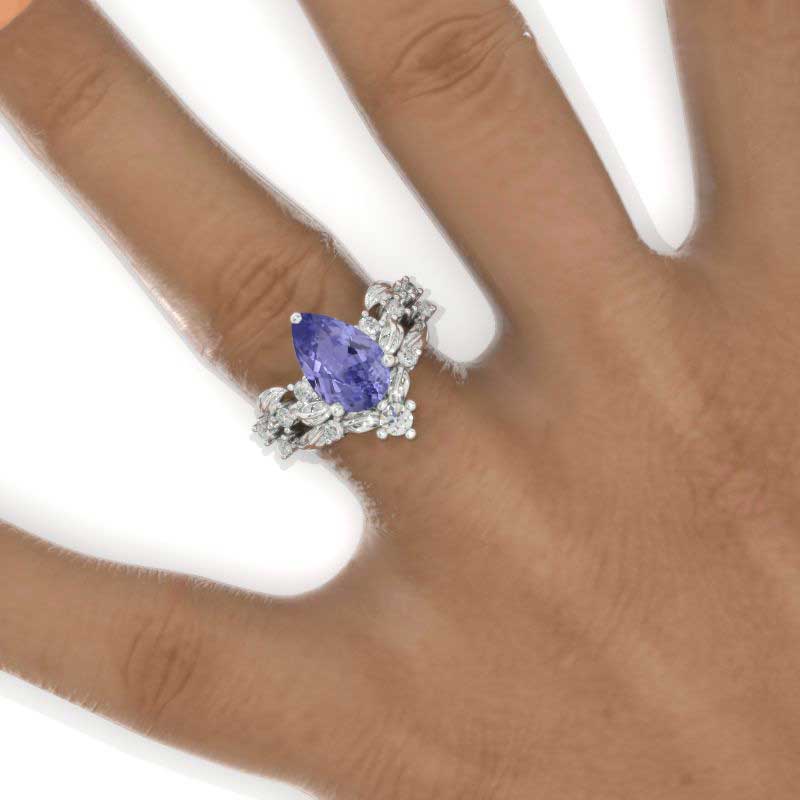 3 Carat Pear Purple Sapphire Halo Floral Engagement 14K White Gold Rin - Giliarto