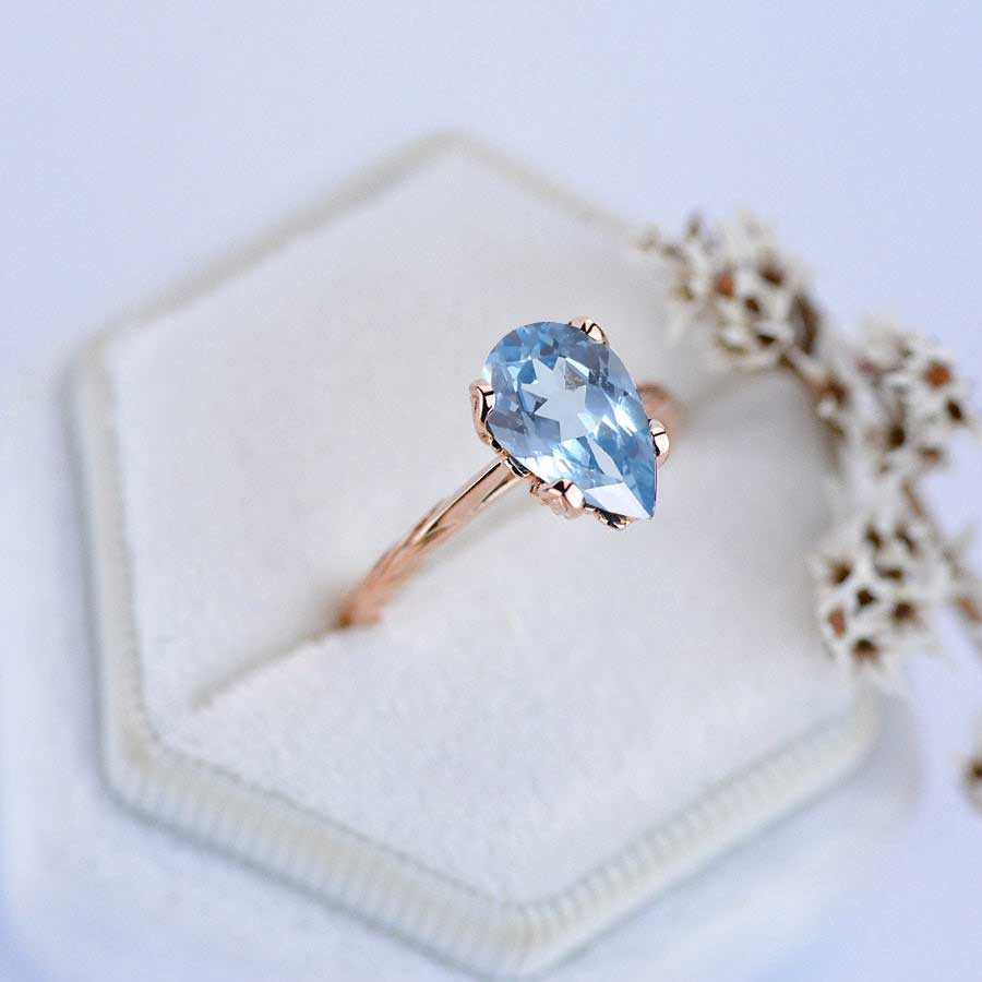 3 Carat Pear Shaped Genuine Natural Aquamarine Engagement Ring - Giliarto